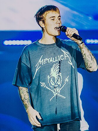 Justin Drew Bieber is a Canadian singer. Regarded as a pop icon, he is known for his multi-genre musical performances. He was discovered by Scooter Braun in 2008 and brought to the U.S. by Usher, both of whom formed RBMG Records to sign Bieber in October of that year. His debut extended play, My World (2009), was met with international recognition and established him as a teen idol.